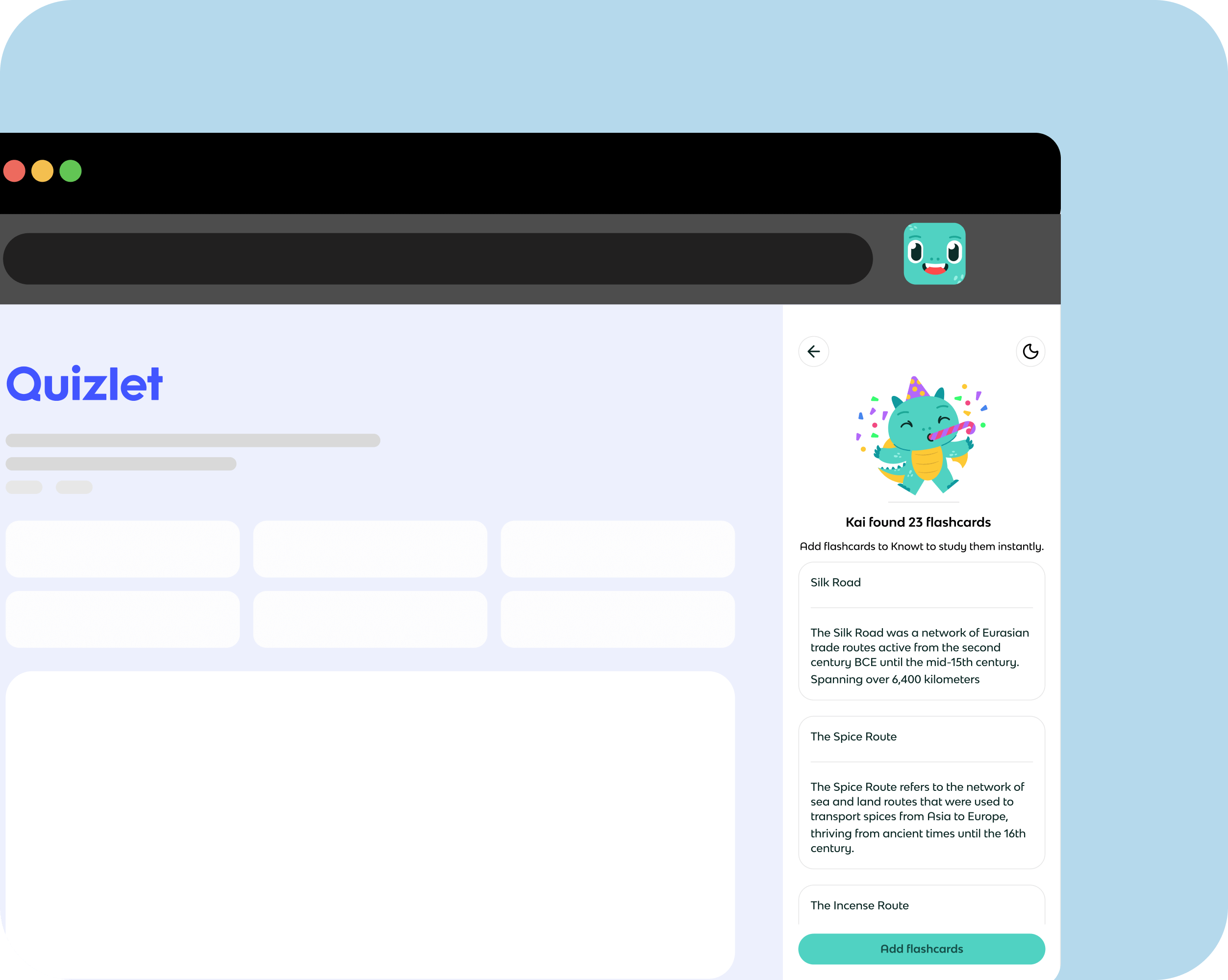 1 click -- 2 second -- import of your Quizlet sets with the Knowt Chrome Extension